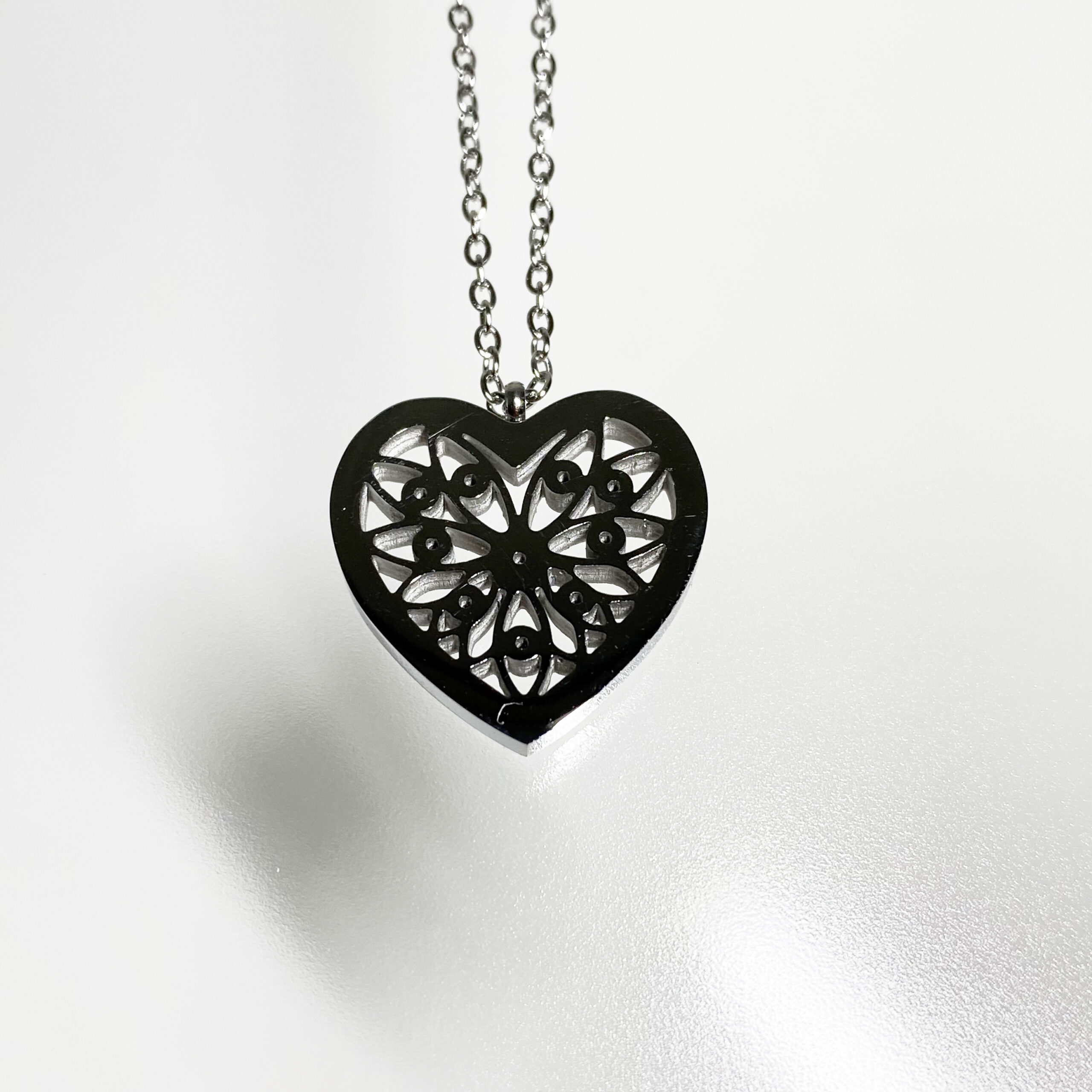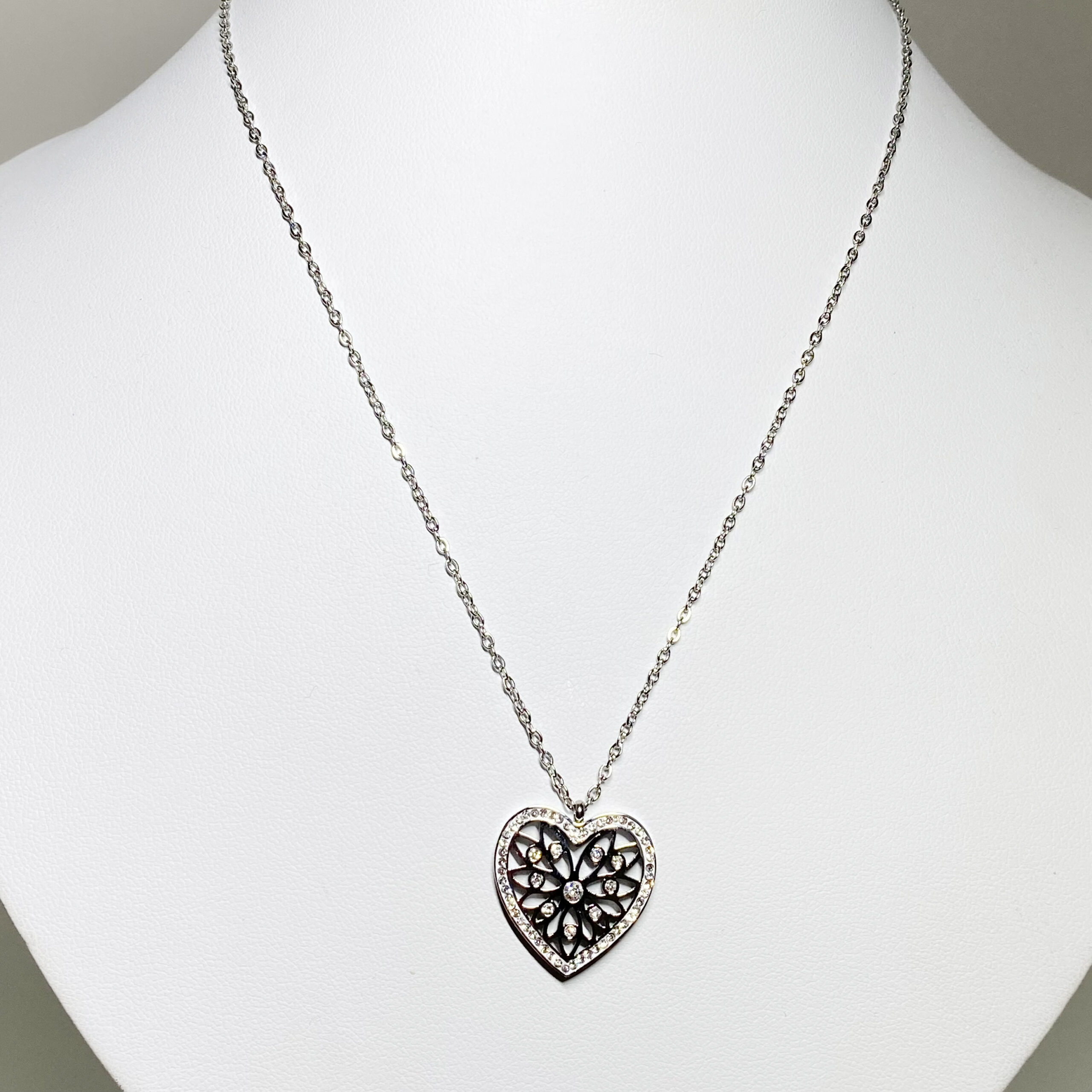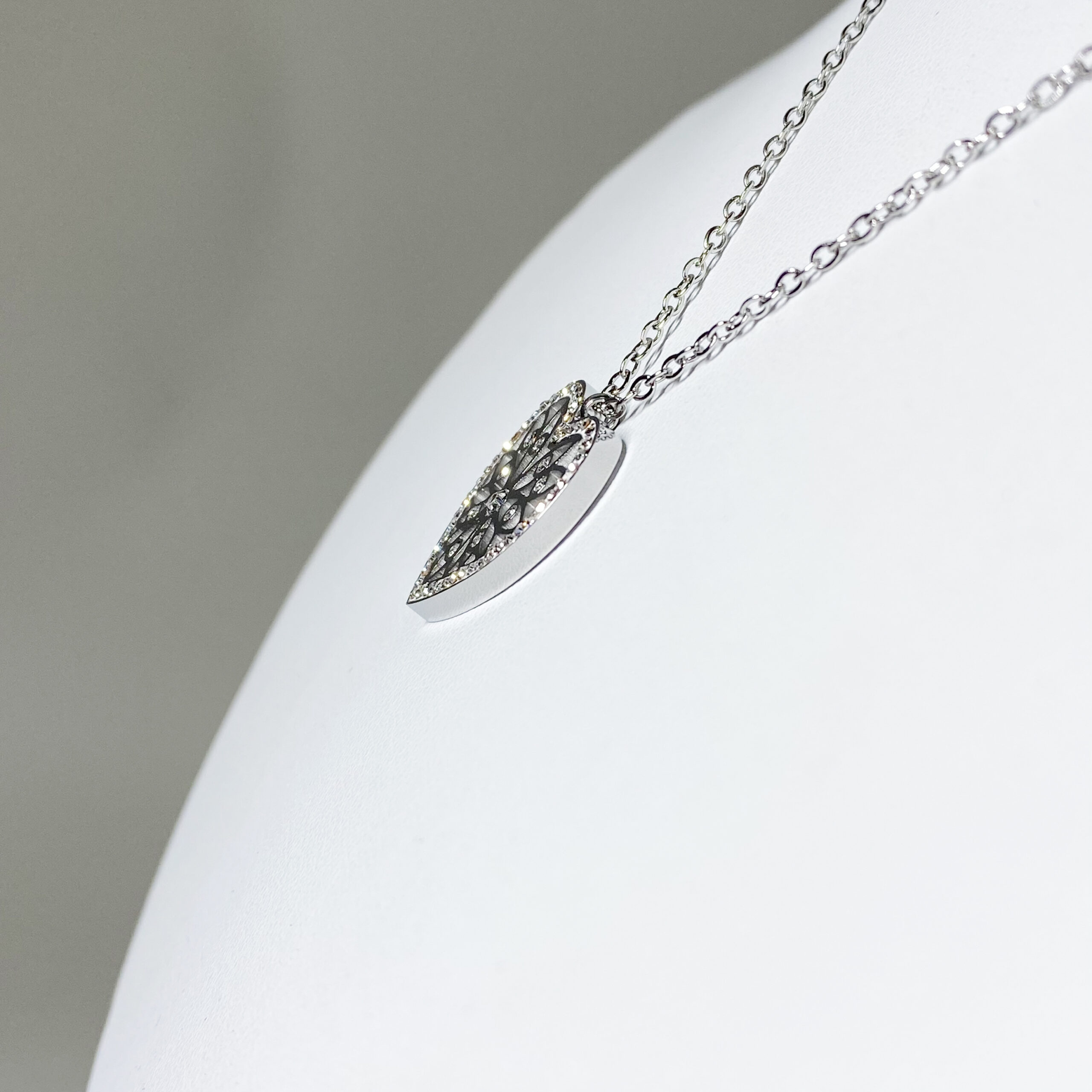 13,200円 (税込)+配送料 ハートの枠の中は透かし彫りのように繊細なデザインのオリバーウェバー スワロフスキー ステンレススチール316L製 ペンダント ネックレス Towardsは、甘すぎないハートであなたのスタイルを引き立てることでしょう。