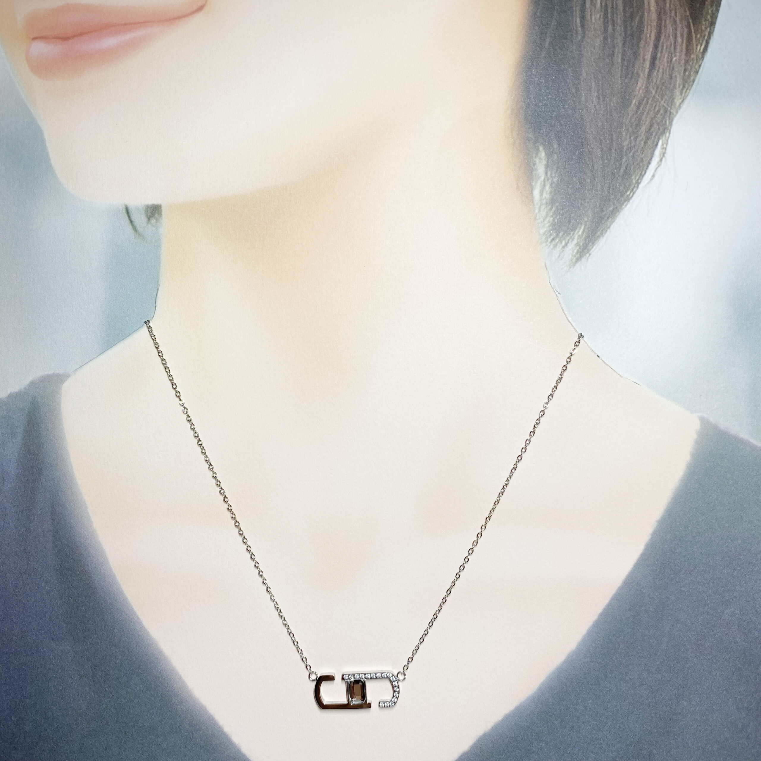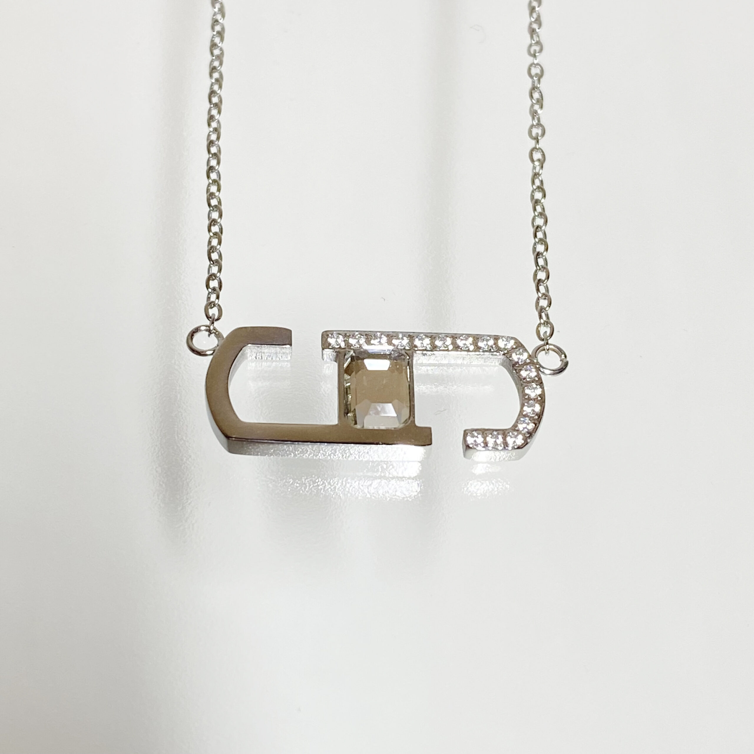 オリバーウェバー 〈スワロフスキー〉 ジルコニア ステンレススチール316L製 ペンダント ネックレスZig Zag シルバーカラー