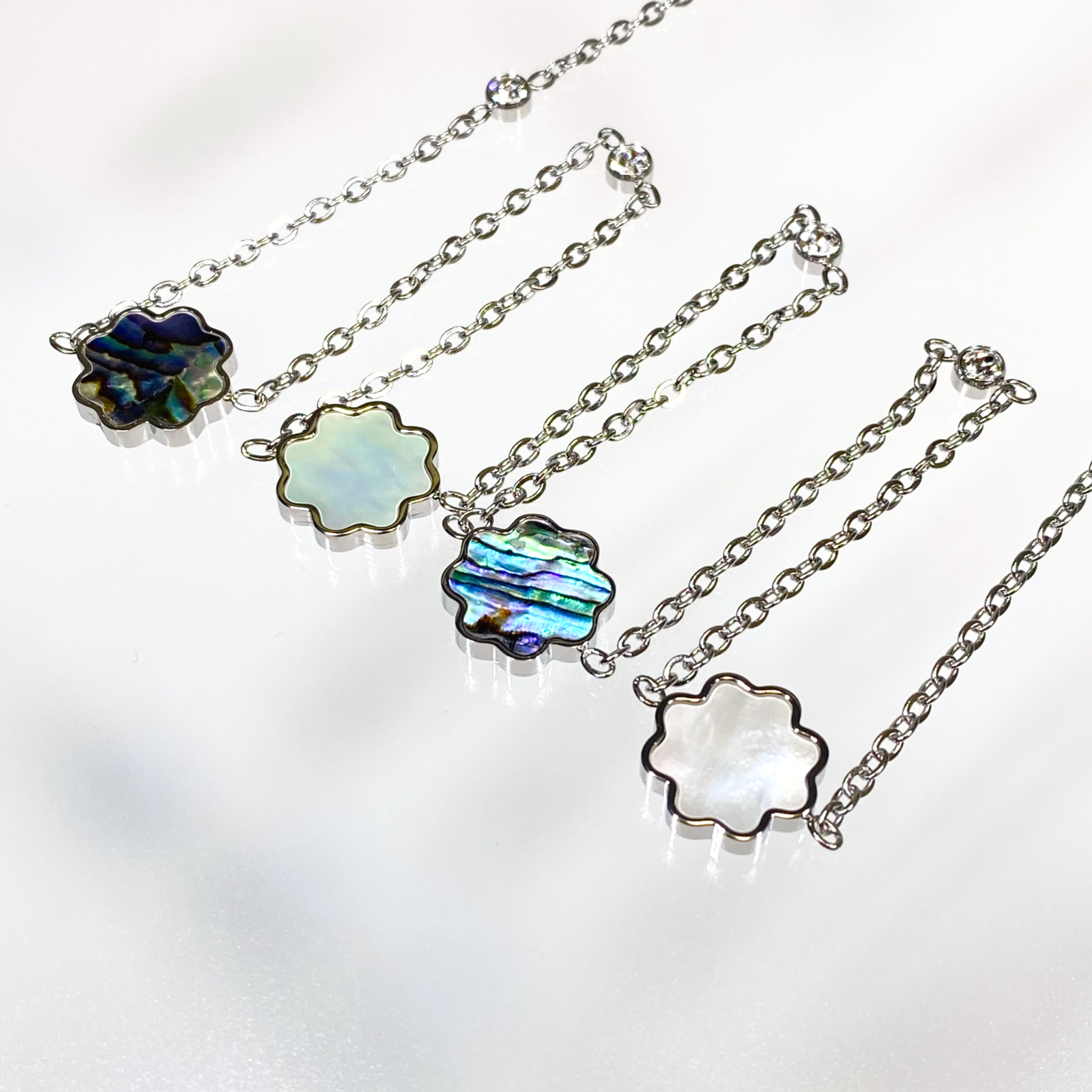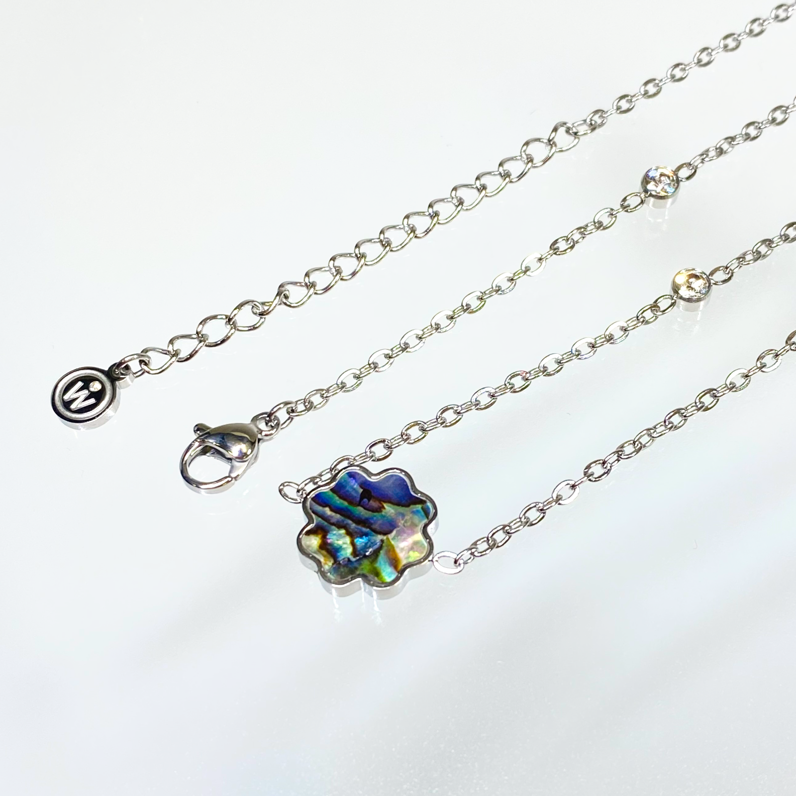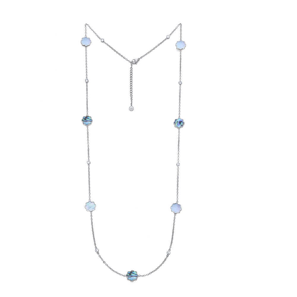 29,150円 (税込)+配送料 シェルの神秘的な輝きにジルコニアが華やかさを添えたロングネックレスは様々なファッションスタイルに優雅さをプラスすることでしょう。