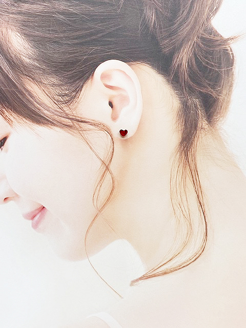 7,700円 (税込)+配送料 レッド系のクリスタルがキュートなハートのピアスです。