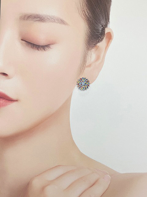 22,000円 (税込)+配送料 サグラダファミリアのステンドグラスをモチーフにしたピアスです。
