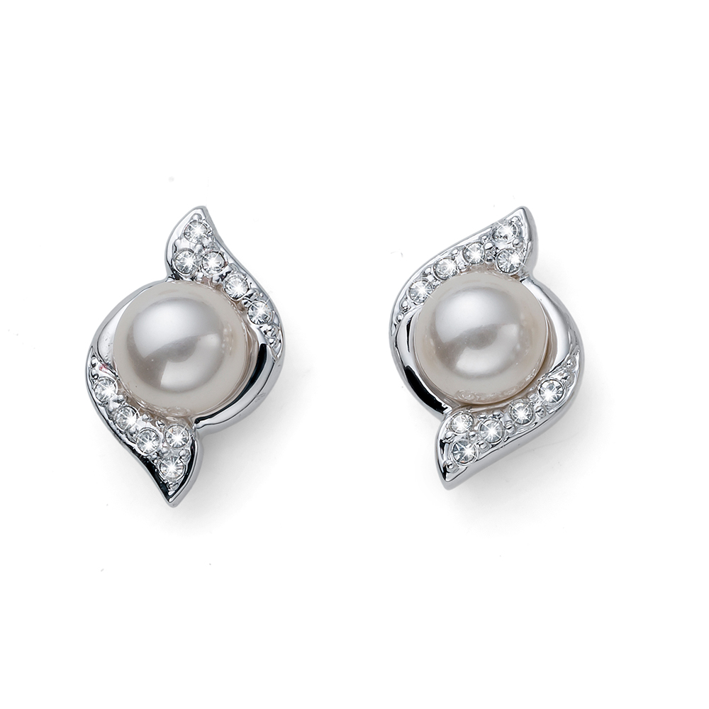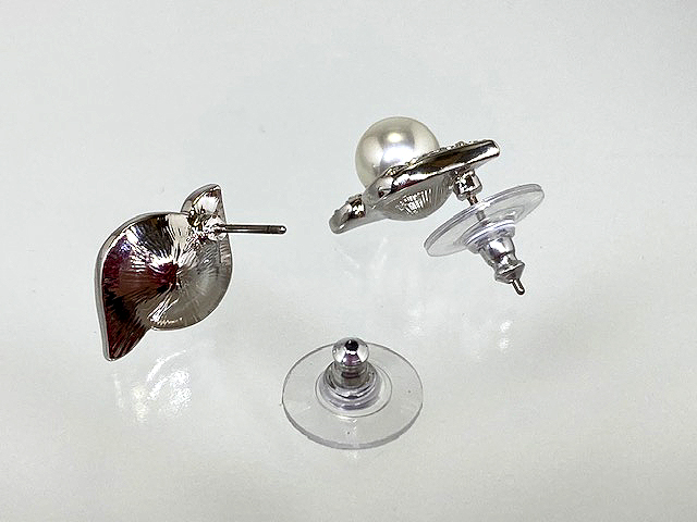 クリスタルパールとクリスタルが美しさを引き立てあうデザインのピアスです。