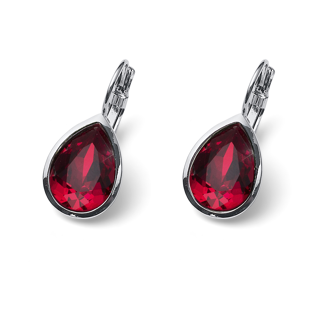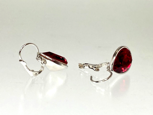シンプルなデザインの赤いドロップ型クリスタルが美しいレバーバックピアスです。