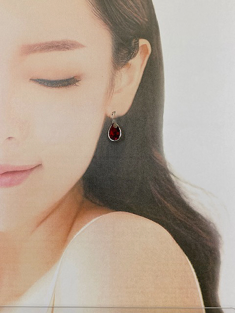 15,400円 (税込)+配送料 シンプルなデザインの赤いドロップ型クリスタルが美しいレバーバックピアスです。