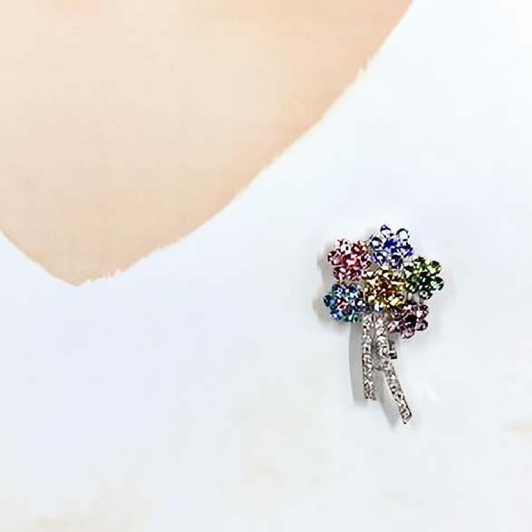 一味違う素敵な花束:美しいクリスタルの花束をパートナーに贈りましょう。鮮やかでカラフルな色彩が遊び心をくすぐり、白いテキスタイルの上でひときわ魅惑的に輝きます。