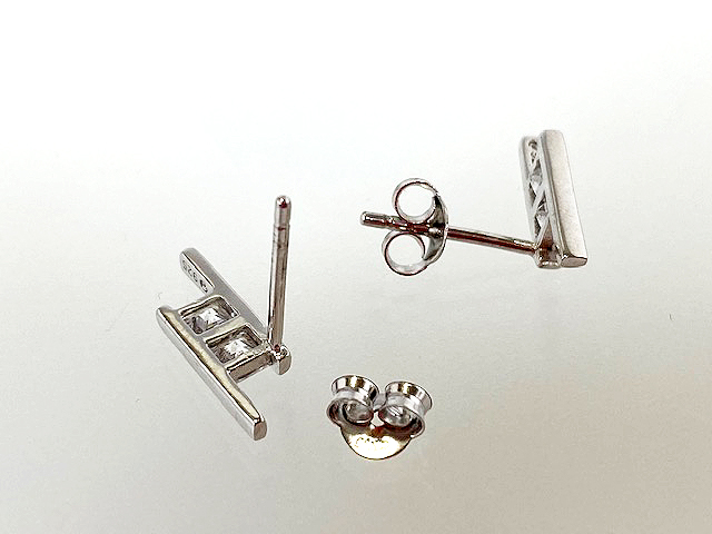 3粒のジルコニアを挟んで留めたデザインのピアスです。