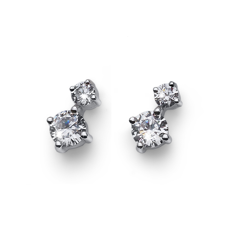 小さな2粒のジルコニアを爪留めしたデザインです。