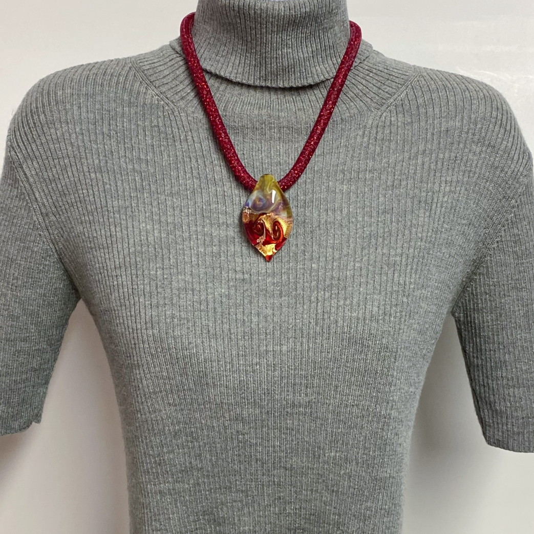 ベネチアンガラス ペンダントネックレス Leaf 赤