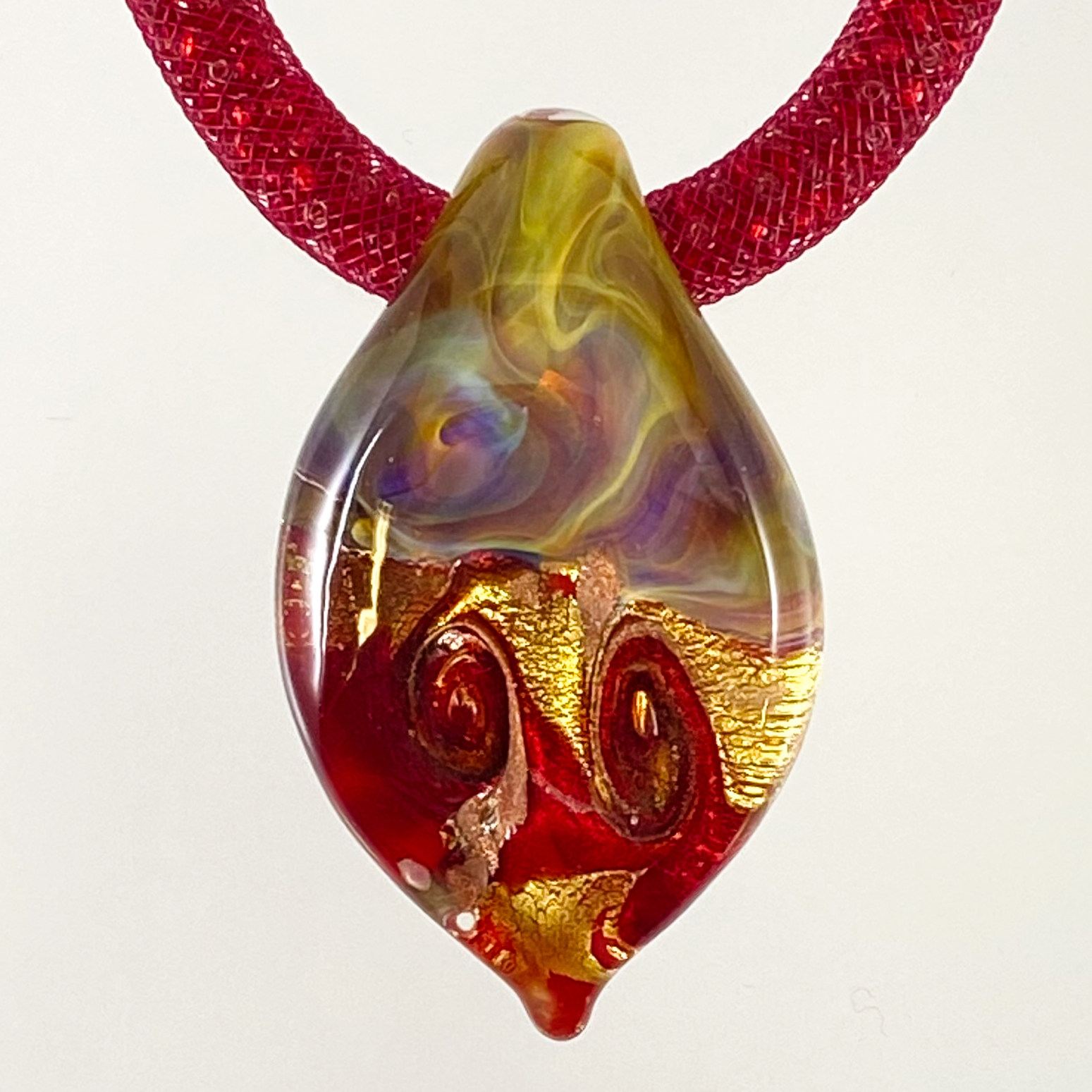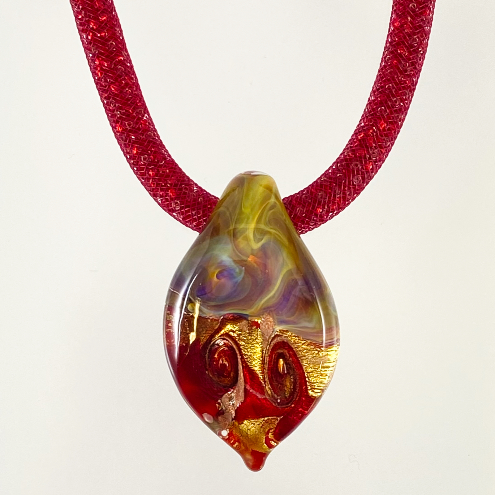 ガラスを艶やかな赤と金箔で織り交ぜ、葉っぱを連想させるデザインの、ベネチアンガラスの美しいネックレス『Leaf 赤』です。