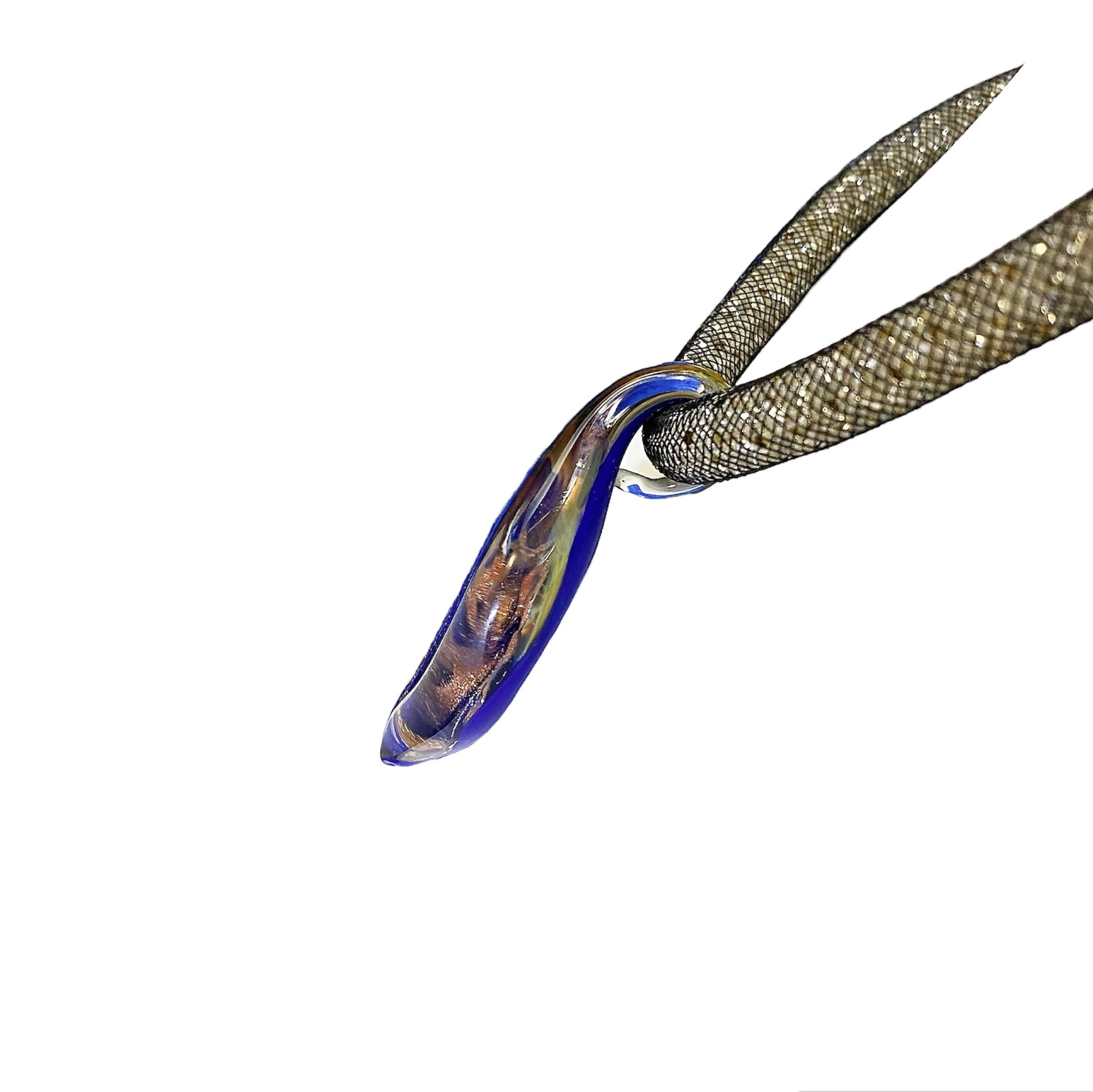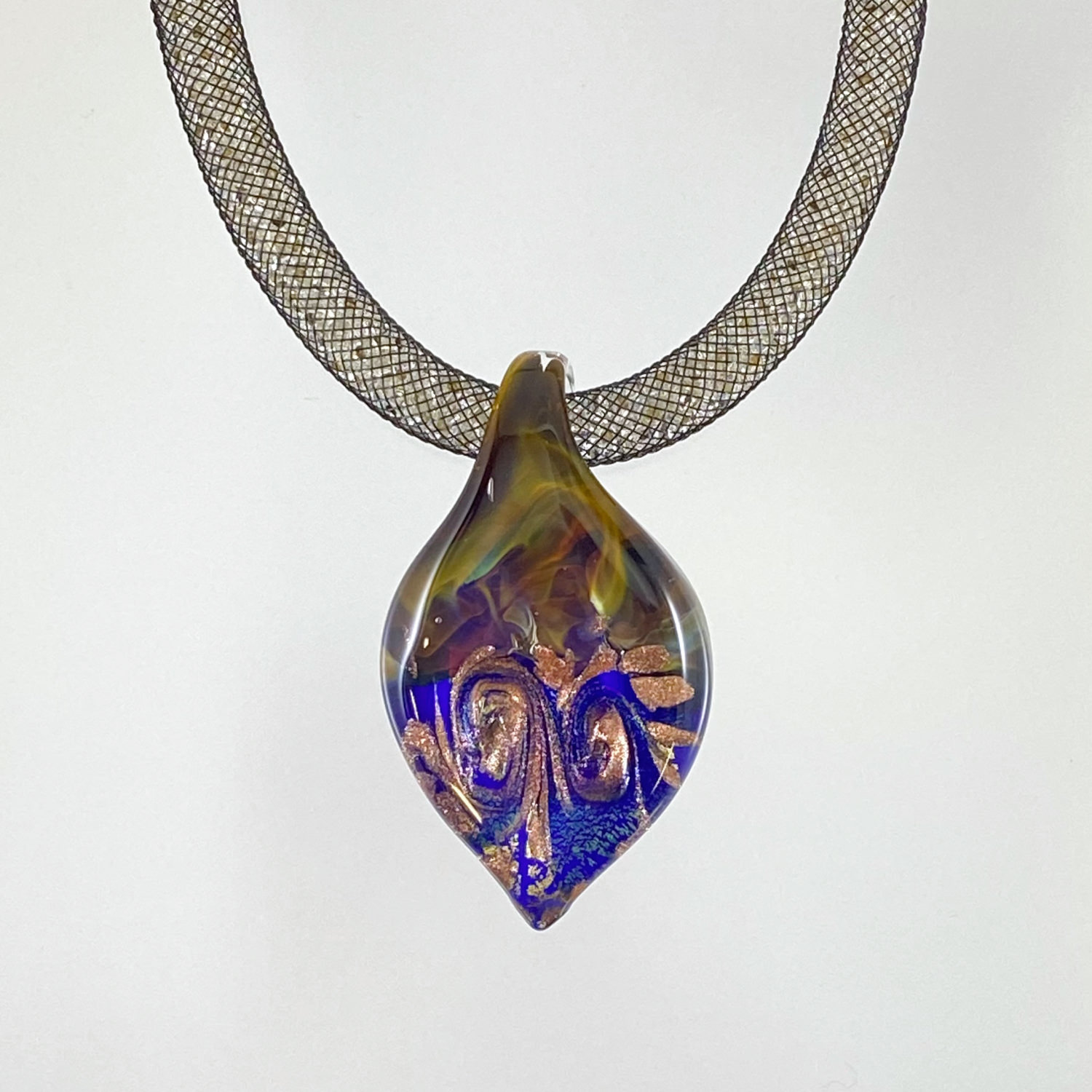 ガラスを鮮やかな青と金箔で織り交ぜ、葉っぱを連想させるデザインの、ベネチアンガラスの美しいネックレス『Leaf 青』です。