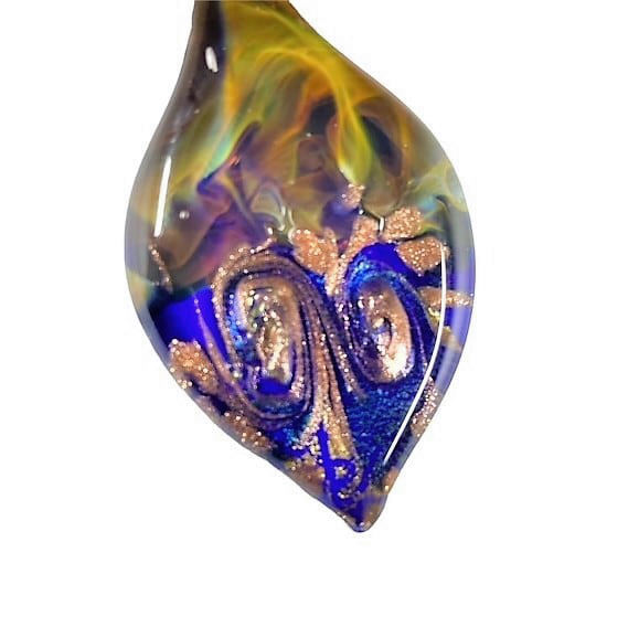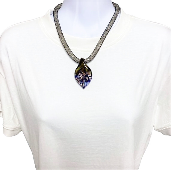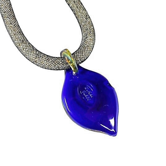 ベネチアンガラス ペンダントネックレス Leaf 青
