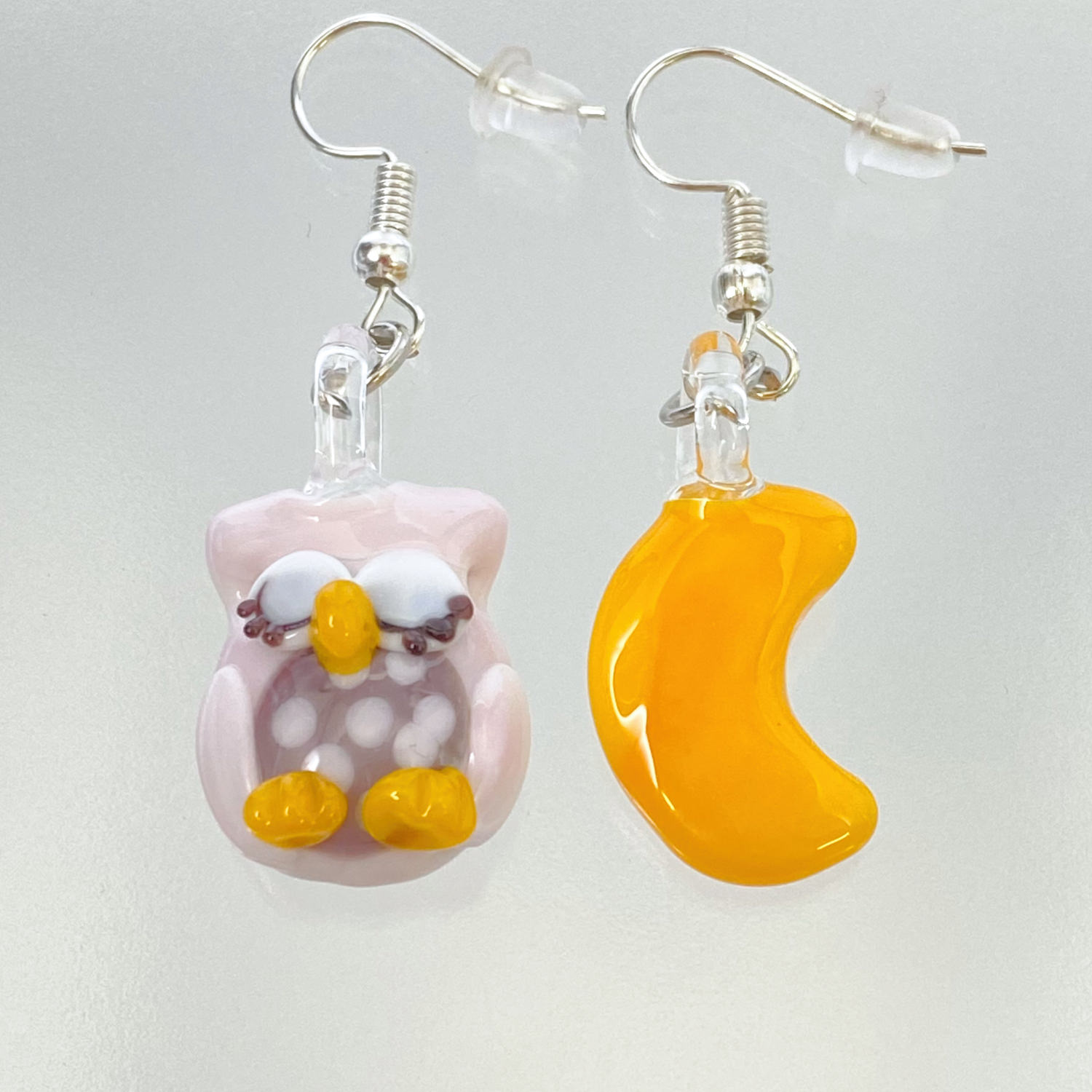 お月様とお眠むなフクロウのピアス。