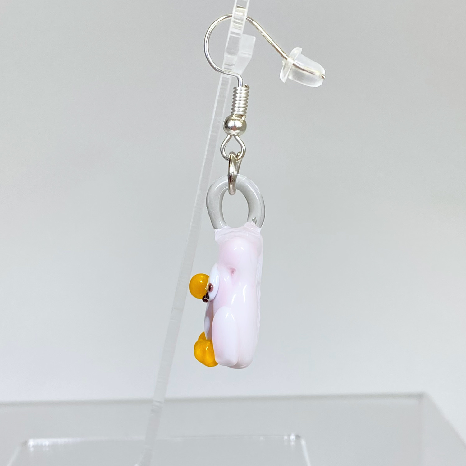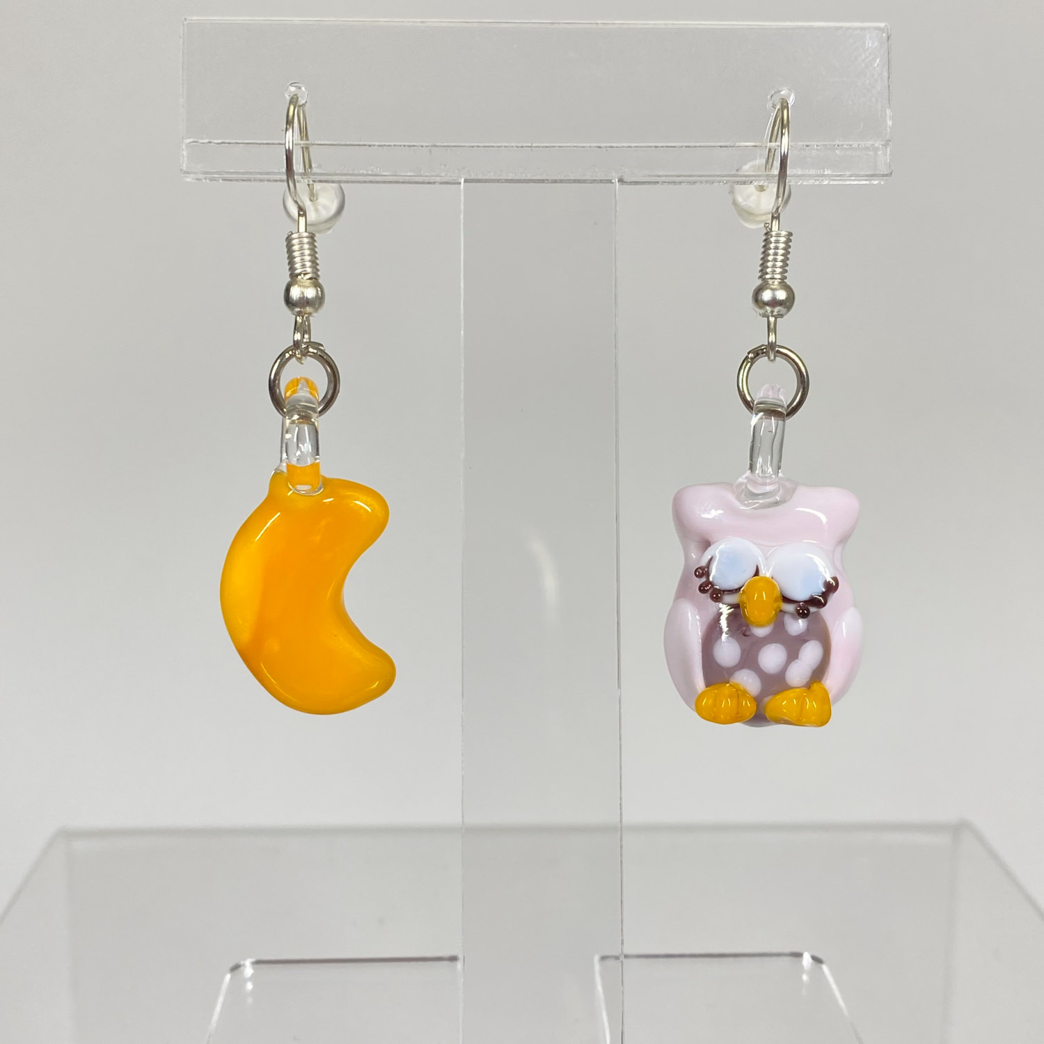 ベネチアンガラス ピアス(引掛け) お月様とお眠むなフクロウ ピンク