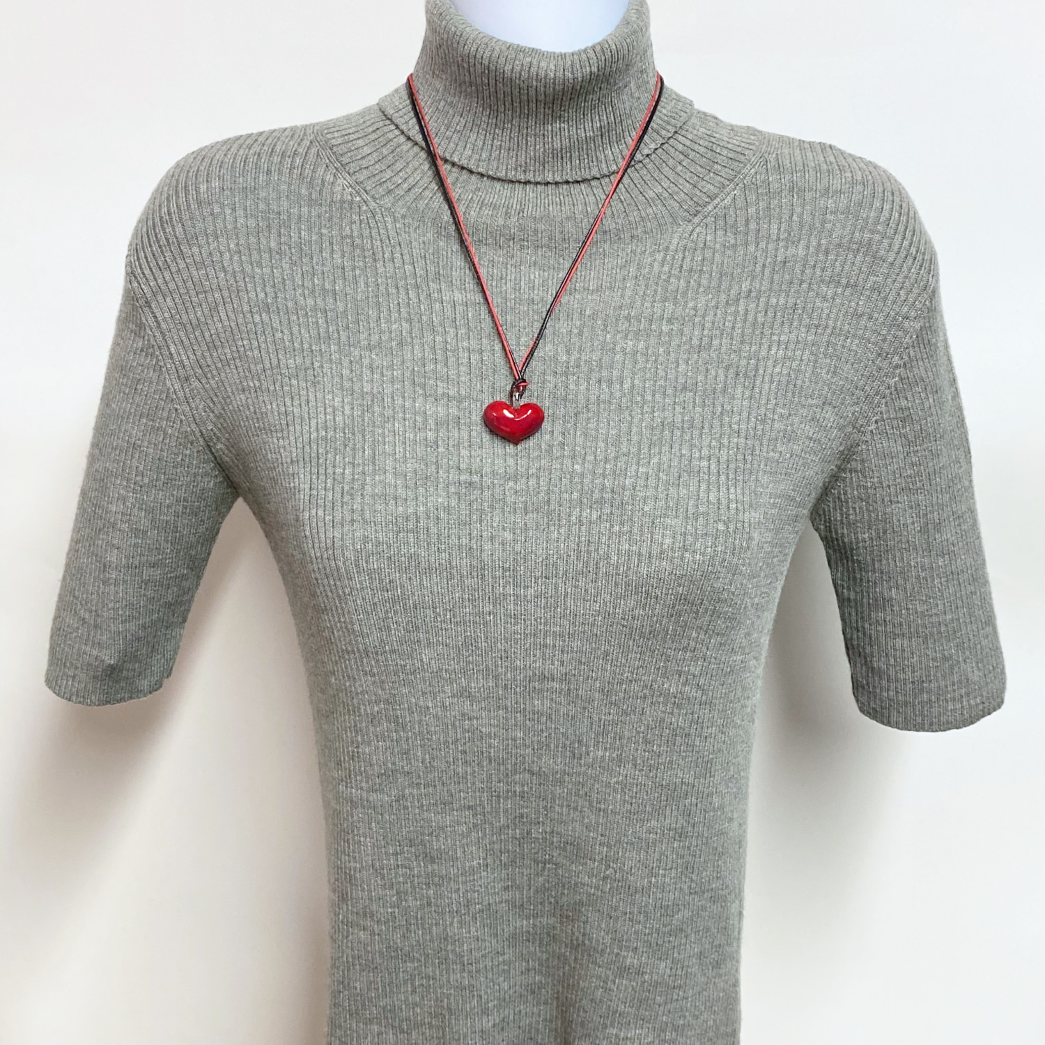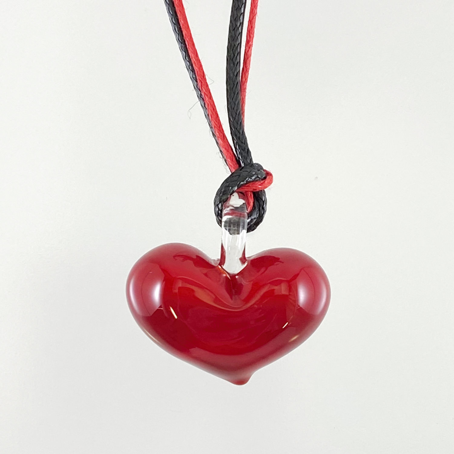 ベネチアンガラス ペンダントネックレス(S) 紐 ハート 赤