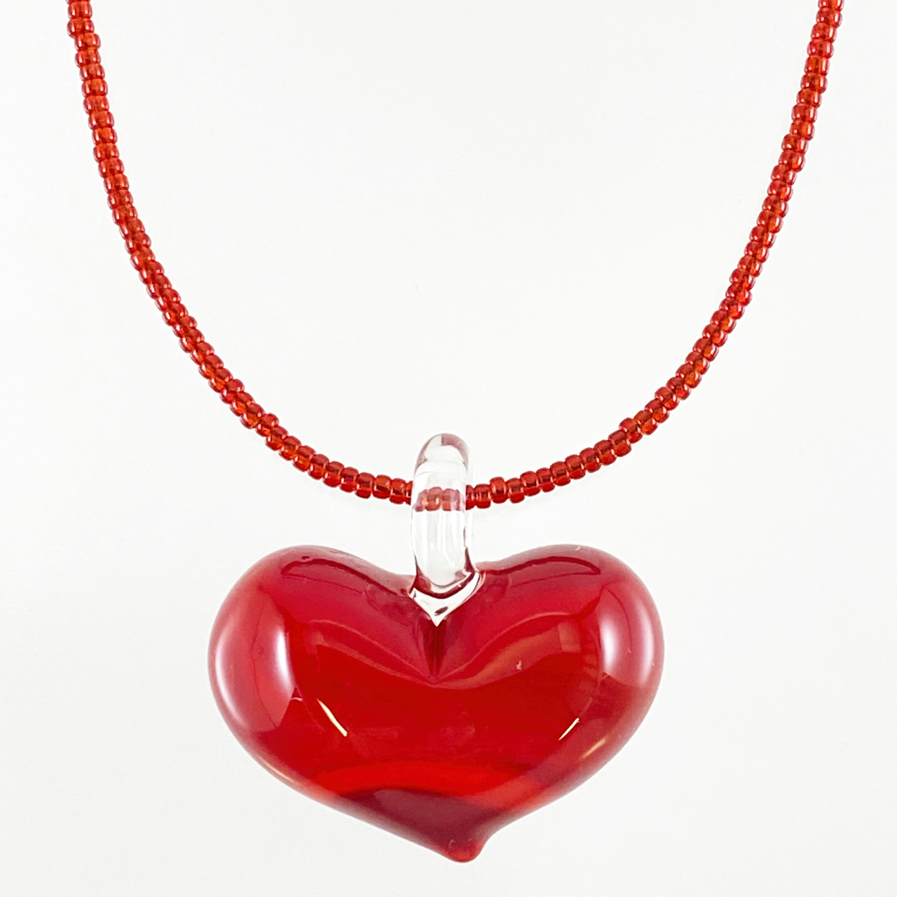 愛を象徴するハートのデザインが美しいベネチアンガラスのペンダントネックレス(Sサイズ)です。赤い色は情熱や愛情を表現するもので、あなたの魅力を一層引き立ててくれます。ガラスビーズチェーンの繊細さが、さらに華やかさを際立たせます。