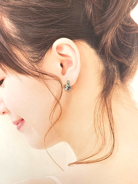 カットの美しいクリスタルが輝くちょっと厚みのあるデザインのピアスです。