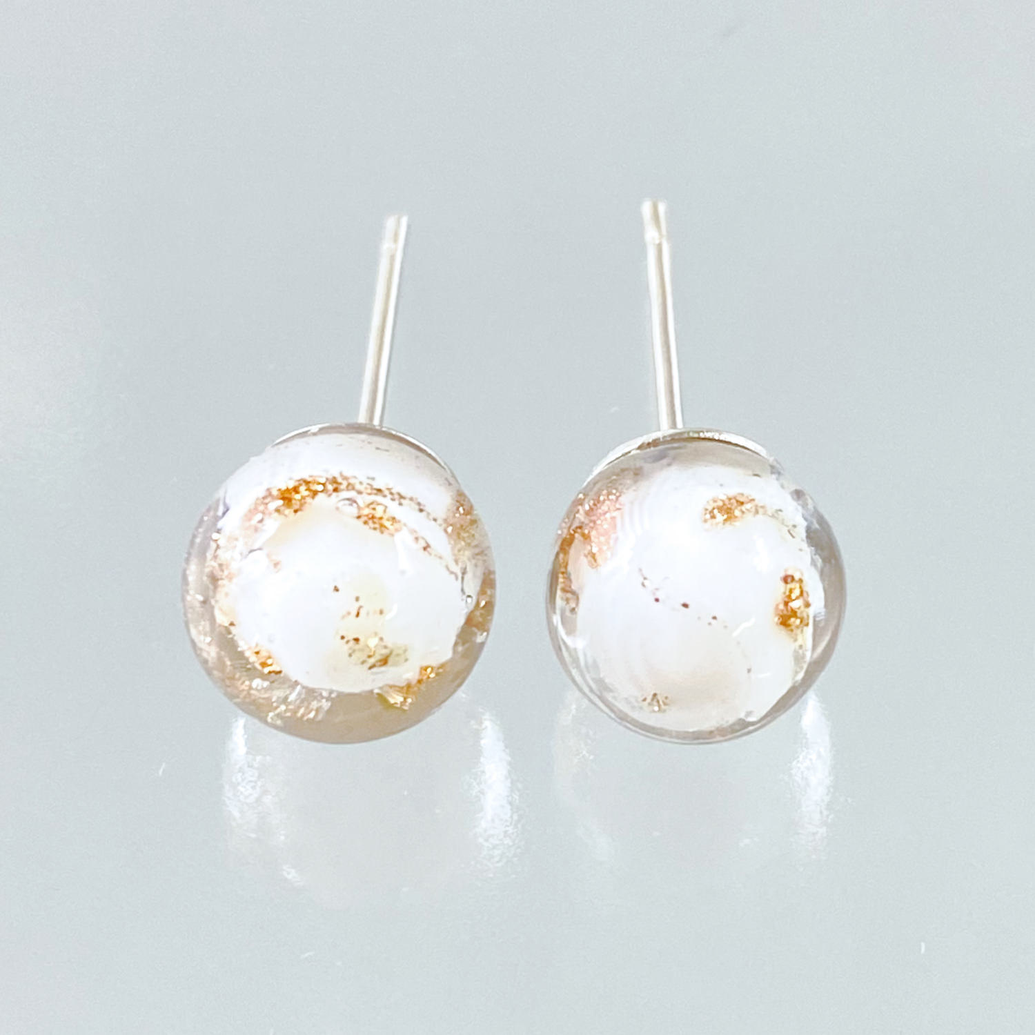 ベネチアンガラス Avventurina ボールピアス 白