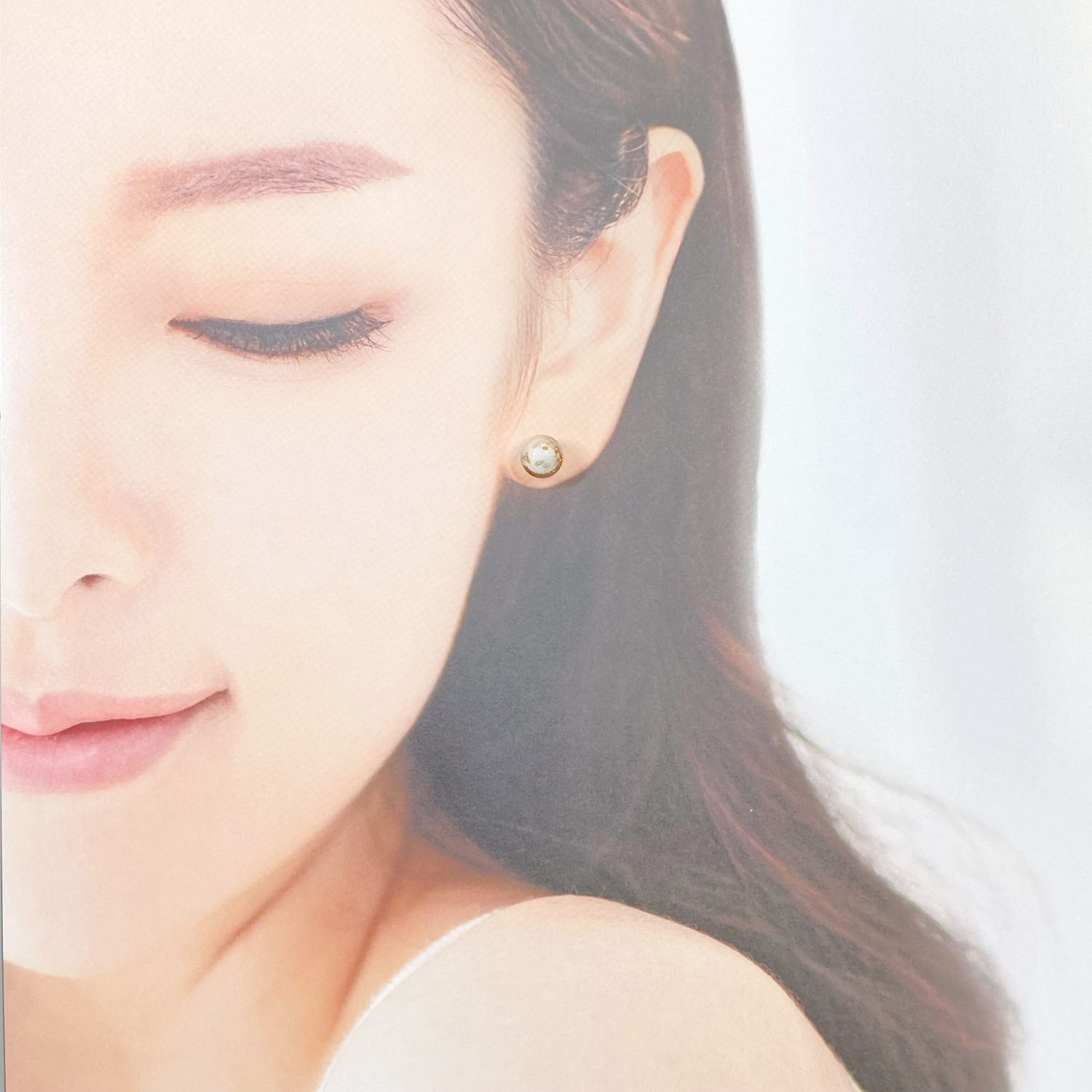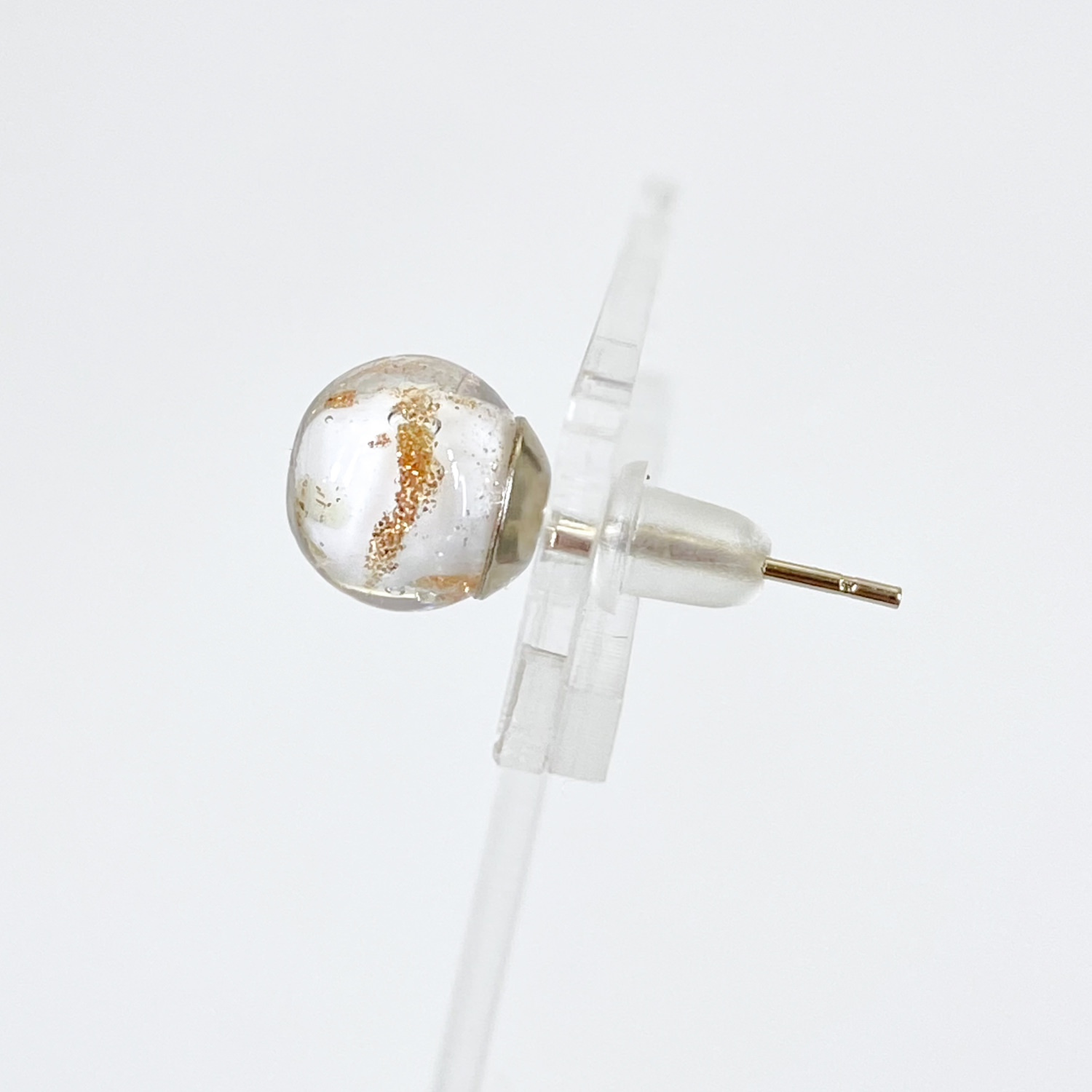 上品に輝く美しい白色のガラスの中に散りばめられた金色が上品に煌めき、耳元で上品に輝きを放つピアスが女性のエレガントさを一層引き立てます。